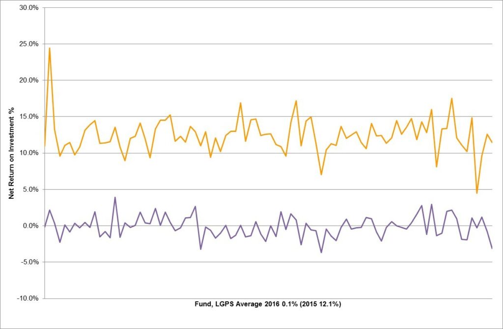 The average local authority pension fund produced a zero return in 2015-16.