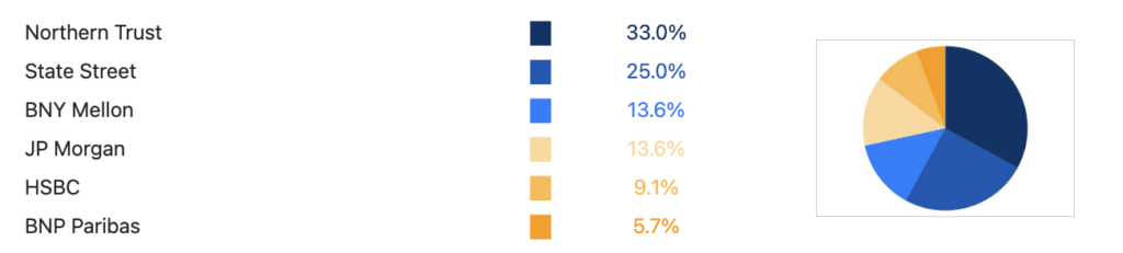 Asset custody* – BNY Mellon, BNP Paribas, HSBC, JP Morgan, Northern Trust and State Street.